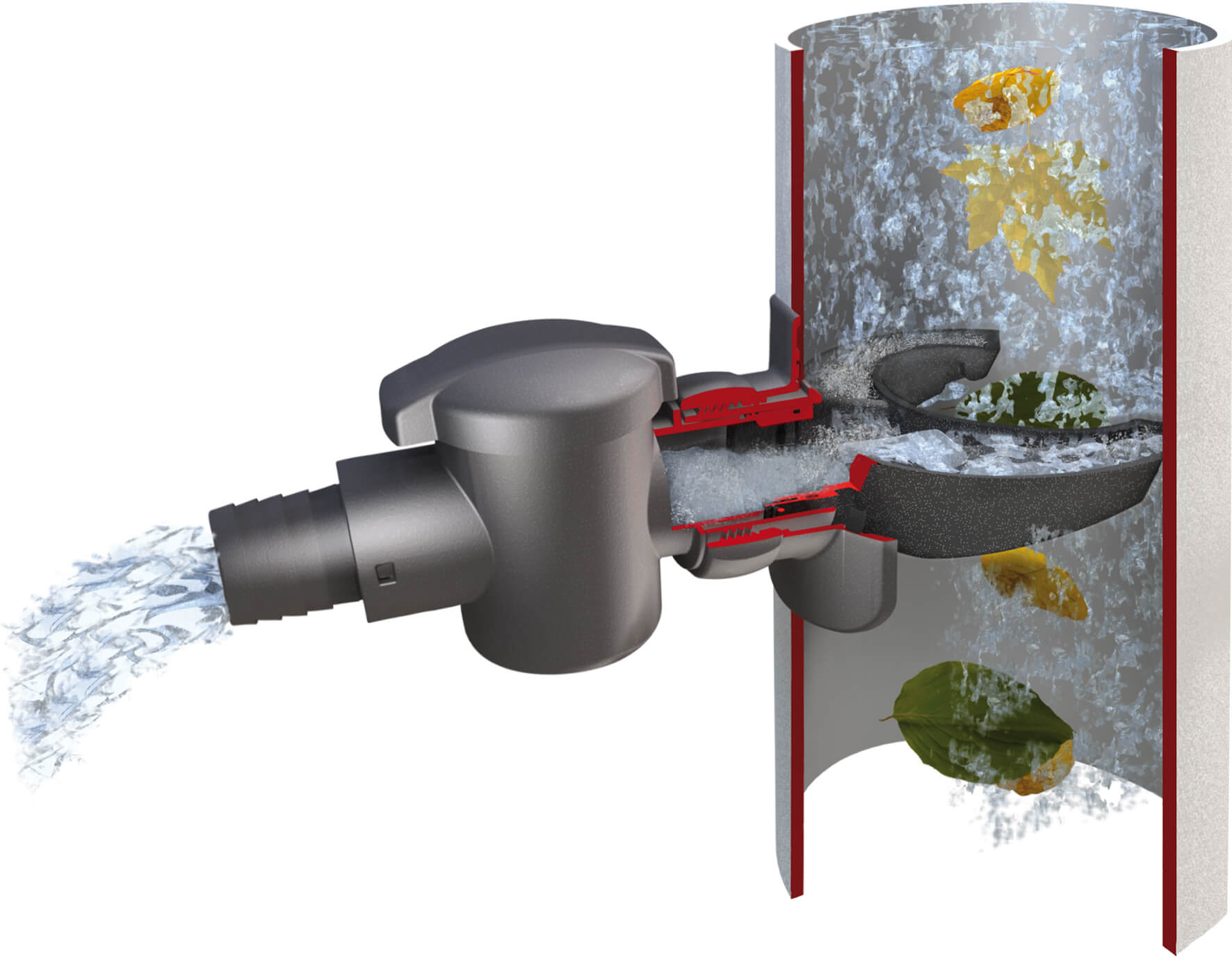 Le filtre intégré protège l'eau des feuilles et des salissures du toit.